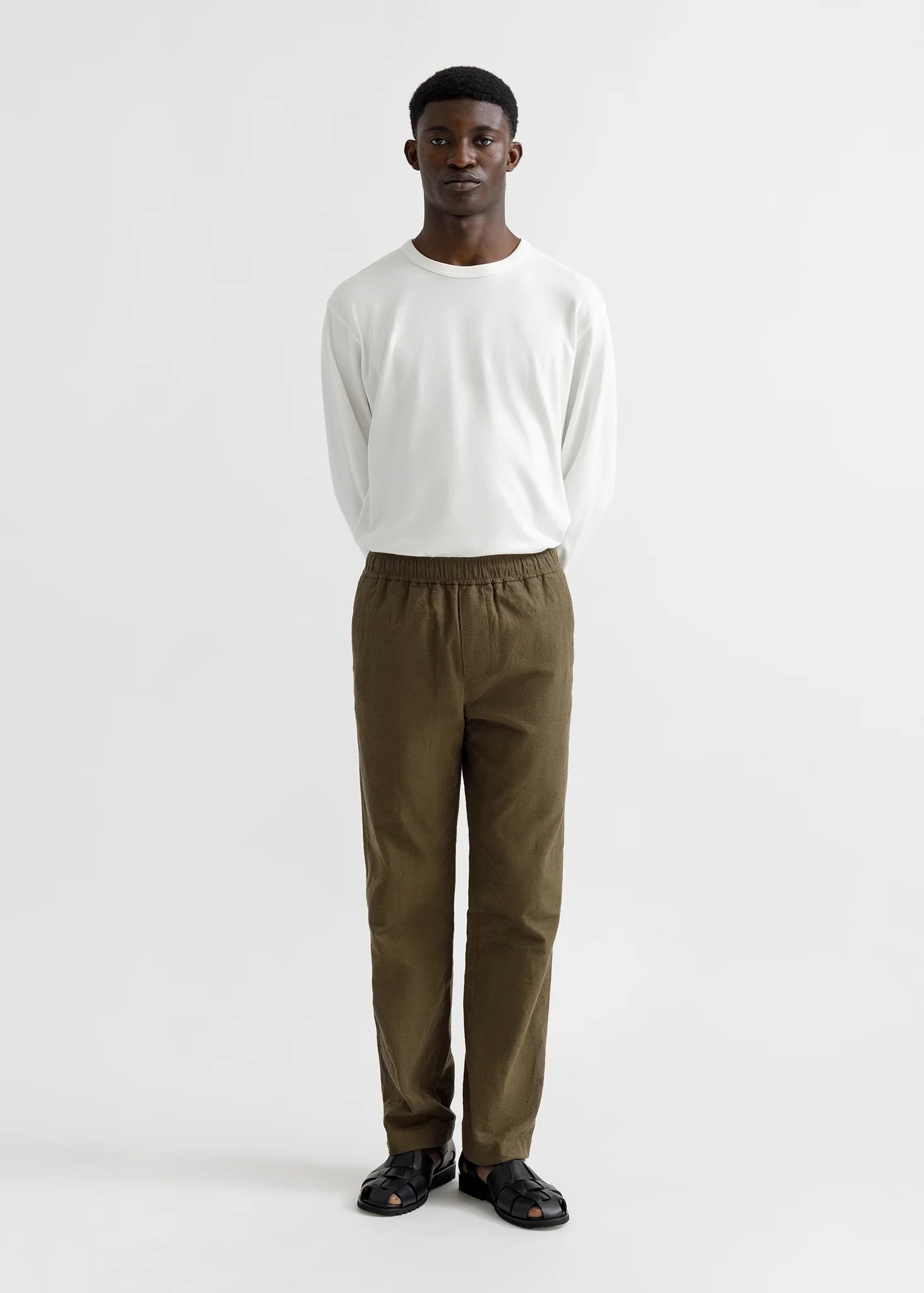 Our Drawstring Trousers has a relaxed straight fit and made from 100% cotton lightweight fabric. The design features an elastic waistband with drawstring and two welted side pockets.